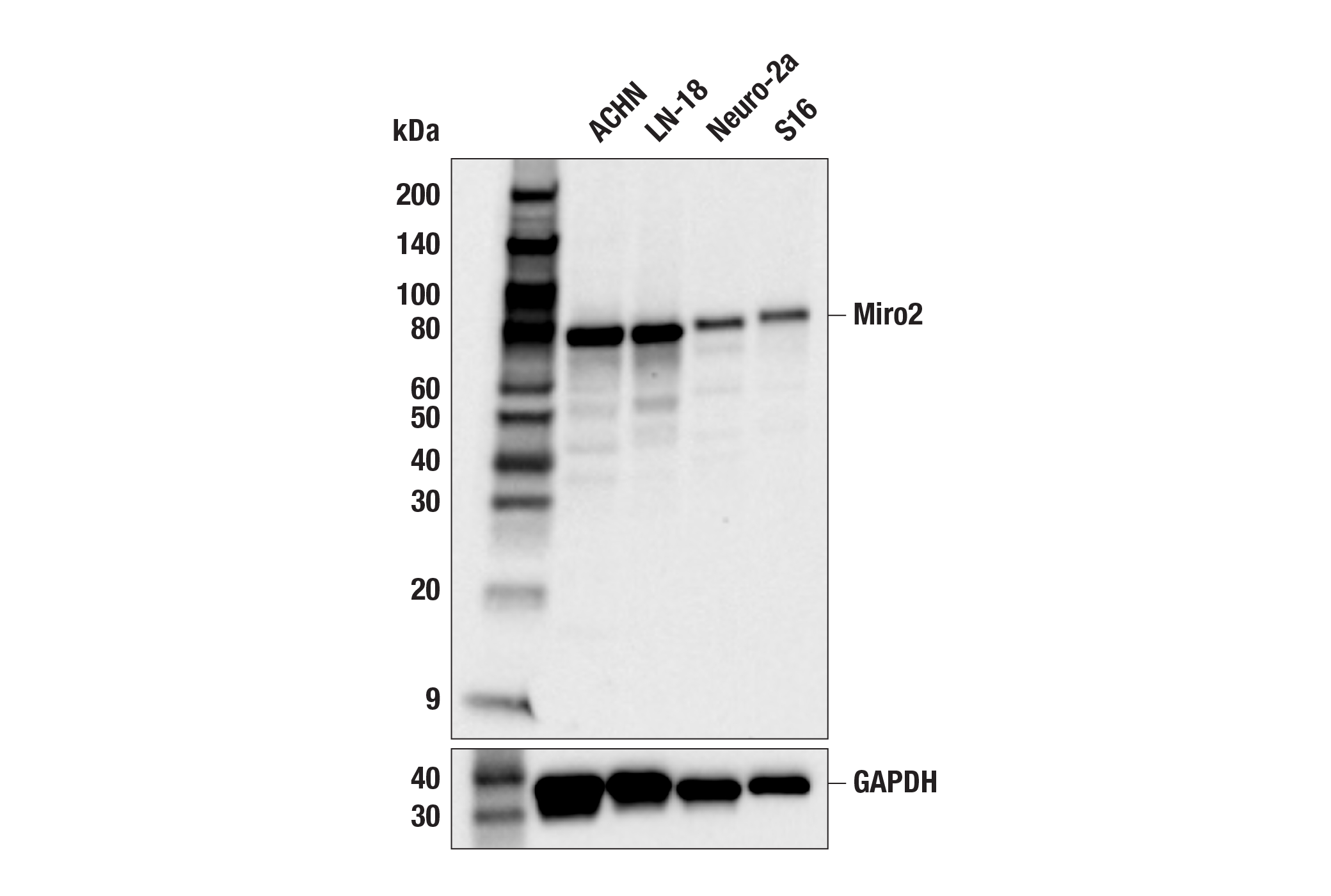 Miro2 (F3N5C) Rabbit Monoclonal Antibody recognizes endogenous levels of total Miro2 protein. This antibody does not cross-react with Miro1 protein.