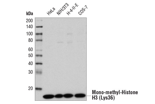 Mono-Methyl-Histone H3 (Lys36) (D9J1D) Rabbit Monoclonal Antibody (BSA and Azide Free) #76466