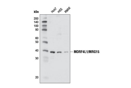 MORF4L1/MRG15 Antibody recognizes endogenous levels of total MORF4L1/MRG15 protein. This antibody does not cross-react with MORF4L2/MRGX.