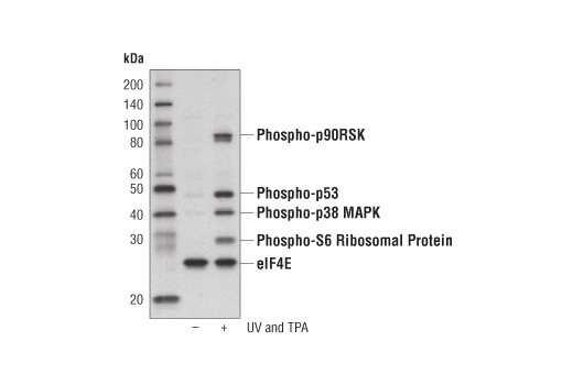 PathScan® Multiplex Western Cocktail II: Phospho-p90RSK, Phospho-p53, Phospho-p38 MAPK and Phospho-S6 Ribosomal Protein Detection Cocktail II #5302