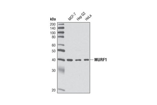 E3 ubiquitin-protein ligase TRIM63; FLJ32380; IRF; Iris RING finger protein; MuRF-1; MURF1; MURF2; muscle specific ring finger protein 2; Muscle-specific RING finger protein 1; RING finger protein 28; RING-type E3 ubiquitin transferase TRIM63; RNF28; SMRZ; Striated muscle RING zinc finger protein; TRI63; TRIM63; tripartite motif containing 63; tripartite motif containing 63, E3 ubiquitin protein ligase; tripartite motif-containing 63; Tripartite motif-containing protein 63