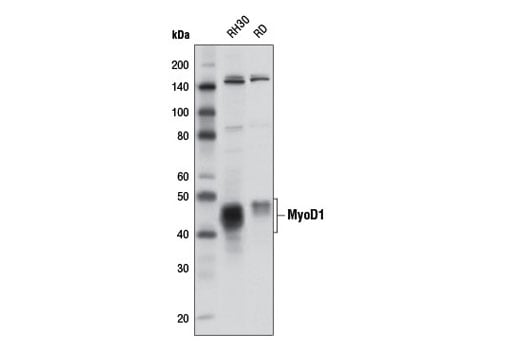 MyoD1 Antibody recognizes endogenous levels of total MyoD1 protein. This antibody also detects a 142 kDa protein of unknown origin.
