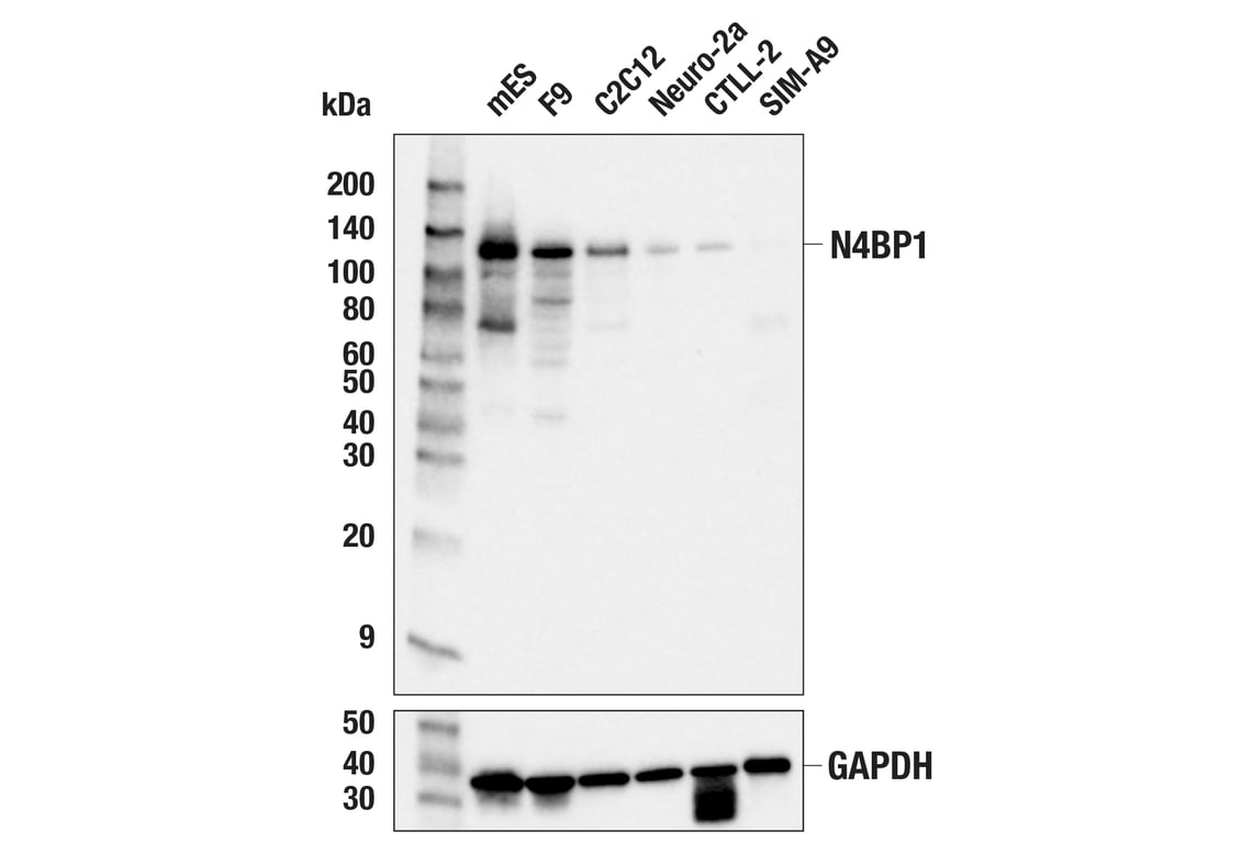 N4BP1 (E9A4J) Rabbit Monoclonal Antibody recognizes endogenous levels of total N4BP1 protein.