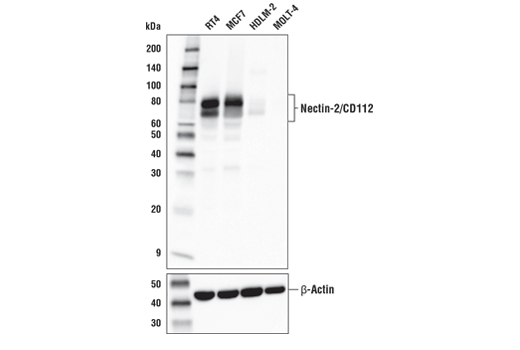 Nectin-2/CD112 (D8D3F) Rabbit Monoclonal Antibody (BSA and Azide Free) recognizes endogenous levels of total Nectin-2/CD112 protein.