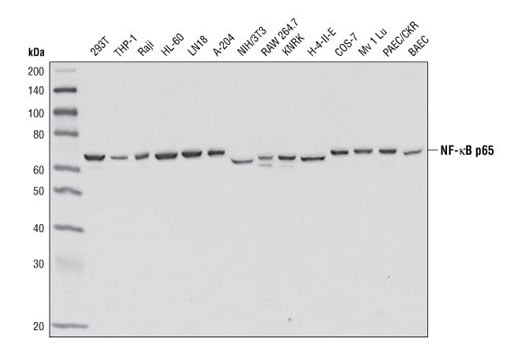 NF-κB p65 (E498) Antibody detects endogenous levels of total NF-κB p65/RelA protein. This antibody does not cross-react with other NF-κB/Rel family members.