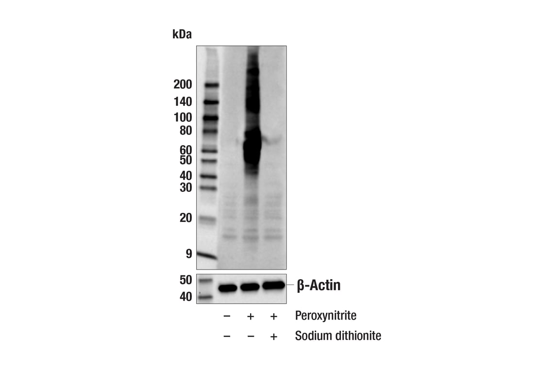 Nitro-Tyrosine (D2W9T) Rabbit Monoclonal Antibody recognizes a broad range of nitrosylated tyrosine containing proteins and peptides. This antibody does not cross-react with phosphorylated tyrosine.