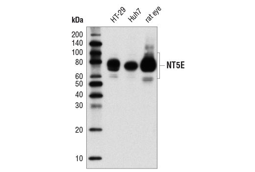 NT5E/CD73 (D7F9A) Rabbit Monoclonal Antibody (BSA and Azide Free) recognizes endogenous levels of total NT5E/CD73 protein.