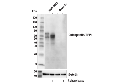 Osteopontin/SPP1 (E9Z1D) Rabbit Monoclonal Antibody (BSA and Azide Free) recognizes endogenous levels of total osteopontin/SPP1 protein.