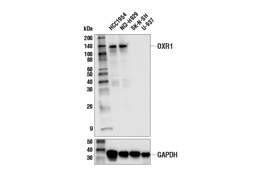 OXR1 (E3D2P) Rabbit Monoclonal Antibody recognizes endogenous levels of total OXR1 protein. Based on the sequence of the antigenic peptide, this antibody is expected to detect isoforms 1, 2, 3, 5, and 8 of OXR1.