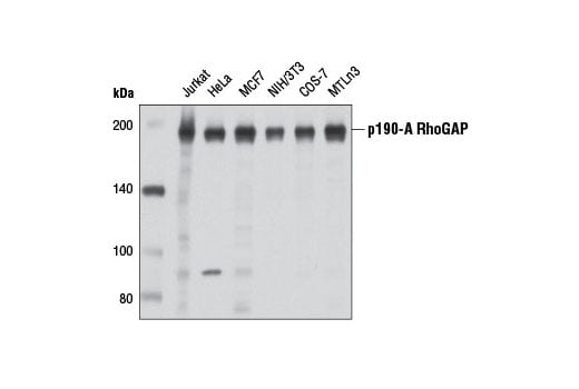 p190-A RhoGAP (D8Q6C) Rabbit Monoclonal Antibody recognizes endogenous levels of total p190-A RhoGAP protein.