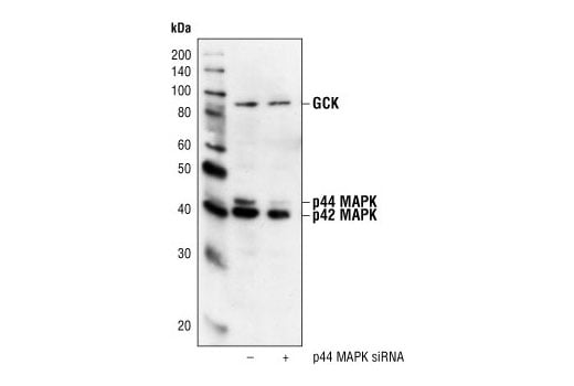 p44/42 MAPK (Erk1/2) Antibody detects endogenous levels of total p44/42 MAP kinase (Erk1/Erk2) protein. In some cell types, this antibody recognizes p44 MAPK more readily than p42 MAPK. This antibody does not recognize either JNK/SAPK or p38 MAP kinase.