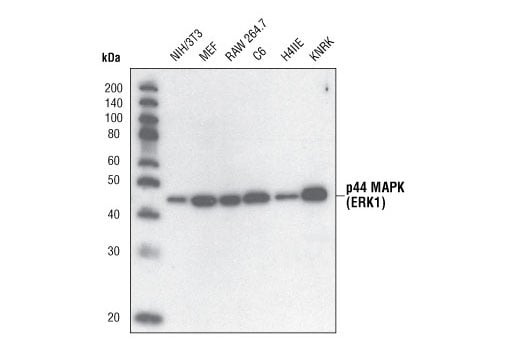 p44 MAP Kinase (Erk1) Antibody detects endogenous levels of p44 MAP kinase (Erk1). This antibody does not recognize p38 MAP kinase, p42 MAP kinase (Erk2) or SAPK/JNK.