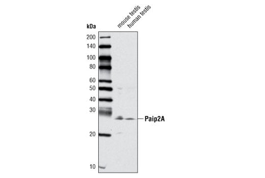 Polyclonal antibodies are produced by immunizing animals with a synthetic peptide corresponding to human Paip2A. Antibodies are purified by protein A and peptide affinity chromatography.
