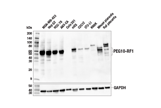 EDR; embryonal carcinoma differentiation regulated; Embryonal carcinoma differentiation-regulated protein; HB-1; KIAA1051; mammalian retrotransposon-derived 2; Mammalian retrotransposon-derived protein 2; MAR2; MART2; MEF3 like 1; MEF3-like protein 1; MEF3L; MEF3L1; Myelin expression factor 3-like protein 1; paternally expressed 10; Paternally expressed gene 10 protein; PEG10; PEG10 iso2; retrotransposon gag domain containing 3; Retrotransposon gag domain-containing protein 3; retrotransposon Gag like 2; Retrotransposon-derived gag-like polyprotein; Retrotransposon-derived protein PEG10; RGAG3; RTL2; SIRH1; Sushi-Ichi retrotransposon homolog 1; Ty3/Gypsy-like protein