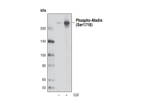 Phospho-Afadin (Ser1718) Antibody is directed at a site that was identified at Cell Signaling Technology (CST) using PhosphoScan®, CST's LC-MS/MS platform for modification site discovery. Phosphorylation at Ser1718 was discovered using an Akt substrate antibody. Please visit PhosphoSitePlus®, CST's modification site knowledgebase, at www.phosphosite.org for more information.