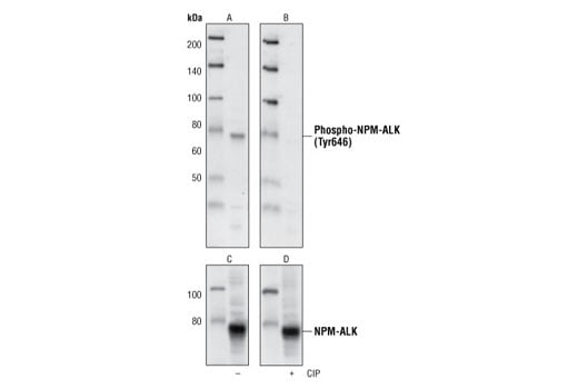 Phospho-ALK (Tyr1586) (3B4) Rabbit Monoclonal Antibody (BSA and Azide Free) detects ALK only when phosphorylated at Tyr1586 (equivalent to Tyr646 of NPM-ALK). This antibody may cross-react with other activated protein tyrosine kinases including EGFR.
