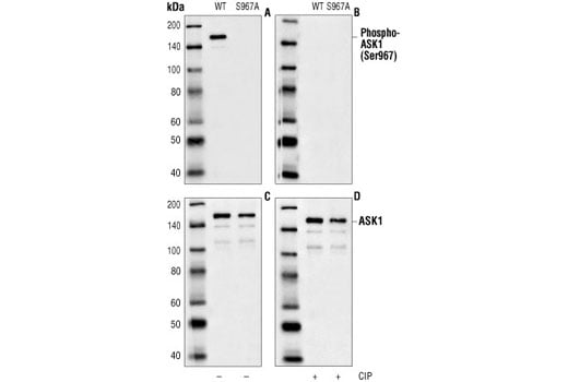 Phospho-ASK1 (Ser967) Antibody detects transfected ASK1 only when phosphorylated at serine 967.