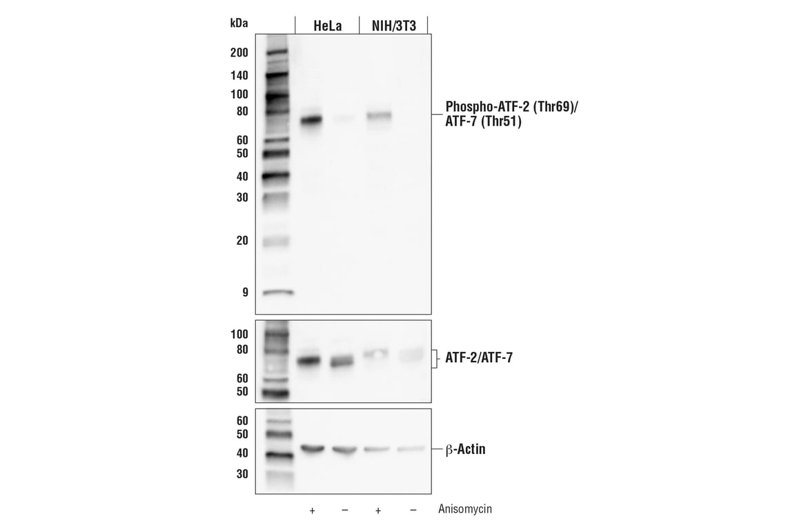 Phospho-ATF-2 (Thr69)/ATF-7 (Thr51) (E3D6B) Rabbit Monoclonal Antibody #44167