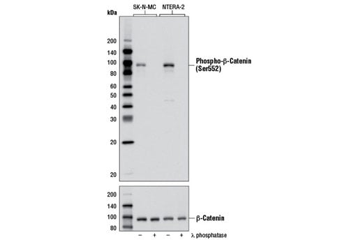 Phospho-beta-Catenin (Ser552) (D8E11) Rabbit Monoclonal Antibody detects endogenous levels of β-catenin protein only when phosphorylated at Ser552.