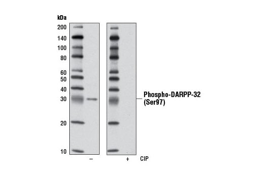 Phospho-DARPP-32 (Ser97) (D11A5) Rabbit Monoclonal Antibody detects endogenous levels of DARPP-32 only when phosphorylated at Ser97.