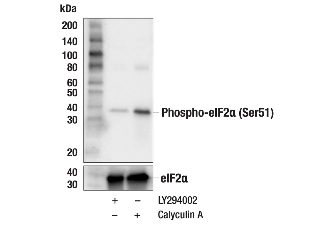 Phospho-eIF2alpha (Ser51) (A4T8X) Mouse Monoclonal Antibody (BSA and Azide Free) detects endogenous levels of eIF2alpha only when phosphorylated at (Ser51).