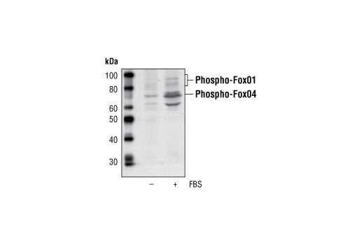Polyclonal antibodies are produced by immunizing animals with a synthetic phosphopeptide corresponding to residues surrounding Ser256 of human Fox01. Antibodies are purified by protein A and peptide affinity chromatography.