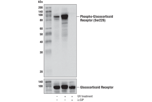 Phospho-Glucocorticoid Receptor (Ser226) (D9D3V) Rabbit mAb recognizes endogenous levels of glucocorticoid receptor protein only when phosphorylated at Ser226.