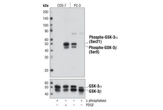 Phospho-GSK-3 alpha/beta (Ser21/9) (D17D2) Rabbit Monoclonal Antibody #8566