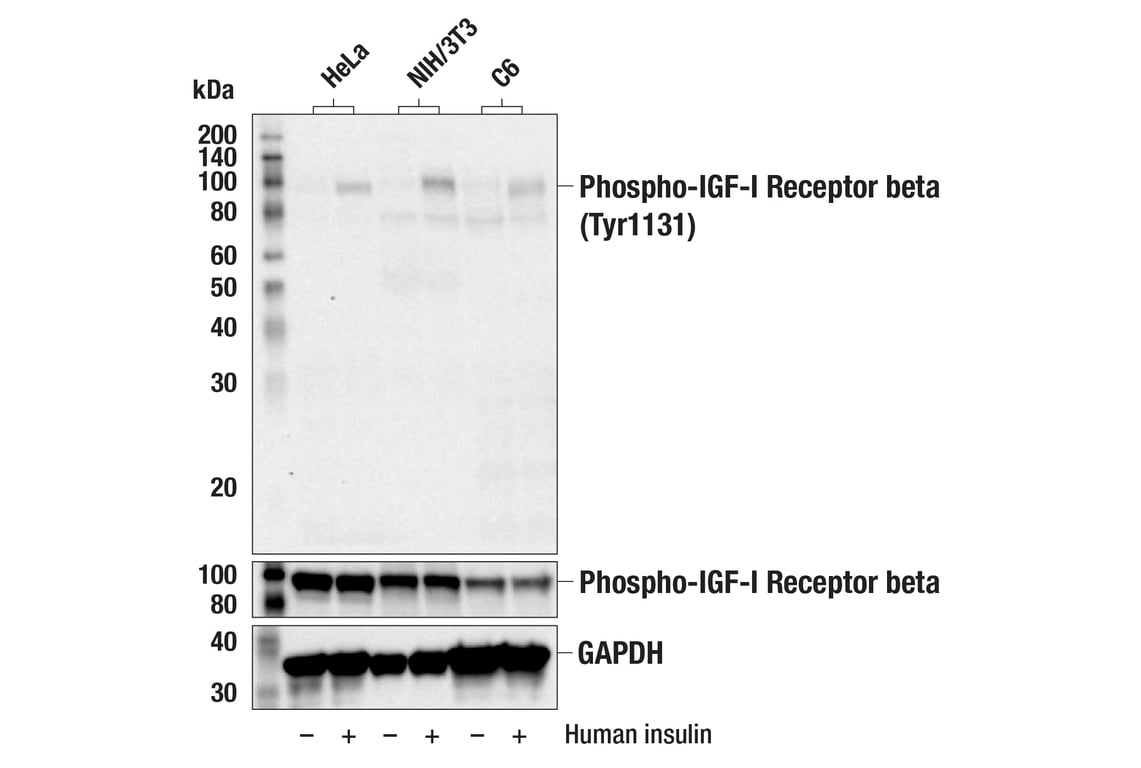 Phospho-IGF-I Receptor beta (Tyr1131)/Insulin Receptor beta (Tyr1146) Antibody #3021