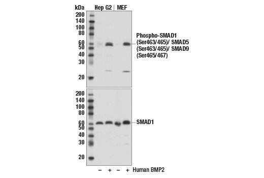 Phospho-SMAD1 (Ser463/465)/ SMAD5 (Ser463/465)/ SMAD9 (Ser465/467) (D5B10) Rabbit Monoclonal Antibody #13820