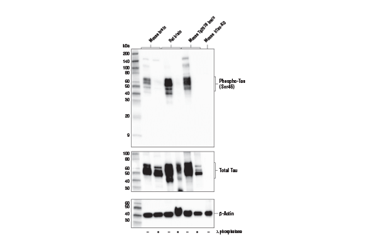 Phosphorylation of Tau at Ser46 is induced by different kinases, including GSK-3β (4), casein kinase-1 (5), and p38MAPK (6). Tau phosphorylation at Ser46 has been linked to different neurodegenerative diseases, including in PHF-Tau from Alzheimer's disease (4,6), Progressive Supranuclear Palsy (7), and synucleinopathies (6).