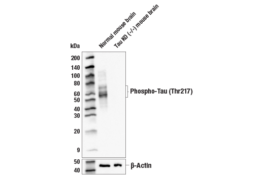 Phospho-Tau (Thr217) (E9Y4S) Rabbit Monoclonal Antibody (BSA and Azide Free) recognizes endogenous levels of tau protein only when phosphorylated at Thr217 and Ser214/Thr217. This antibody does not detect phosphorylation at Ser214 alone.