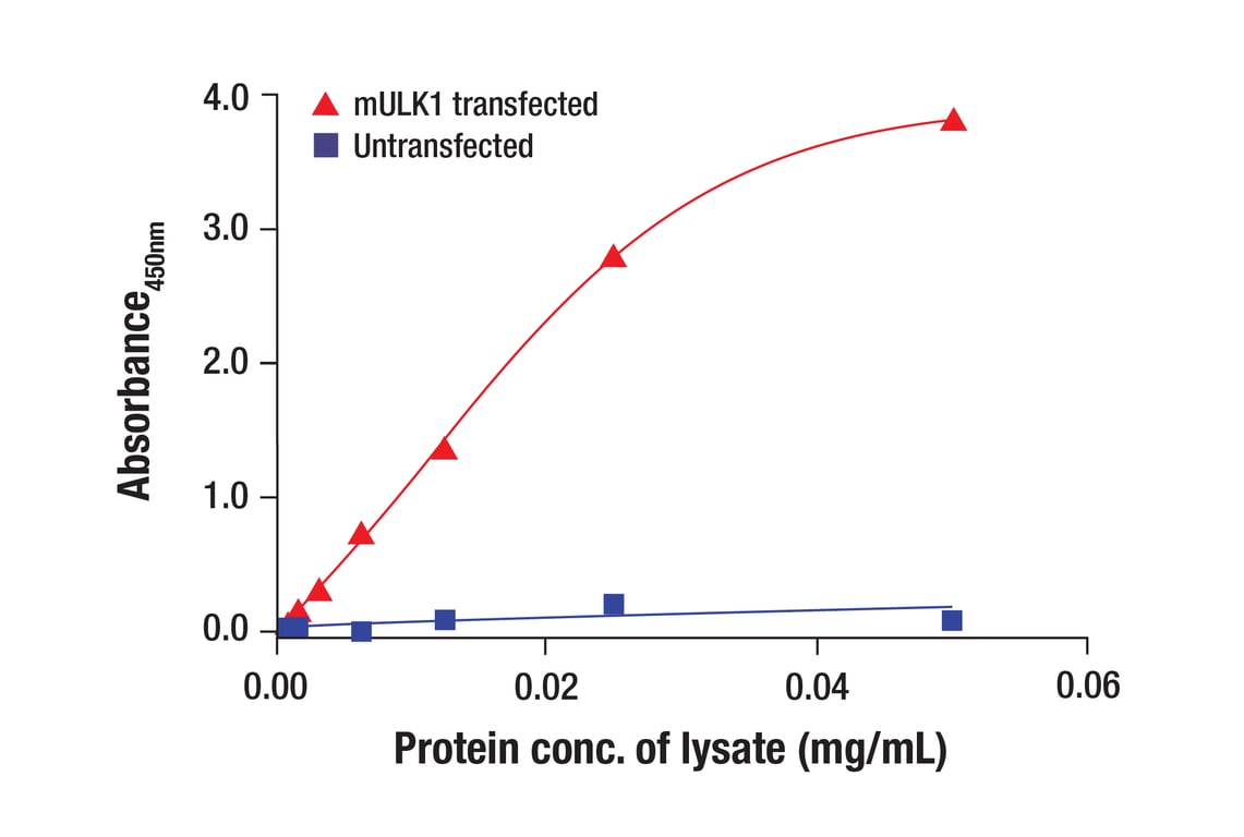The Phospho-ULK1 (Ser555) Matched Antibody Pair is ideal for use with immunoassay technologies and high-throughput ELISA platforms requiring antibody pairs with specialized or custom antibody labeling. Labels include fluorophores, lanthanides, biotin, and beads. Platforms requiring conjugated Matched Antibody Pairs include MSD, Quanterix Simoa, Alpha Technology (AlphaScreen, AlphaLISA, LANCE, HTRF), and Luminex.