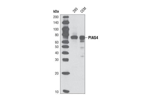 PIAS4 (D2F12) Rabbit Monoclonal Antibody detects endogenous levels of total PIAS4 protein.