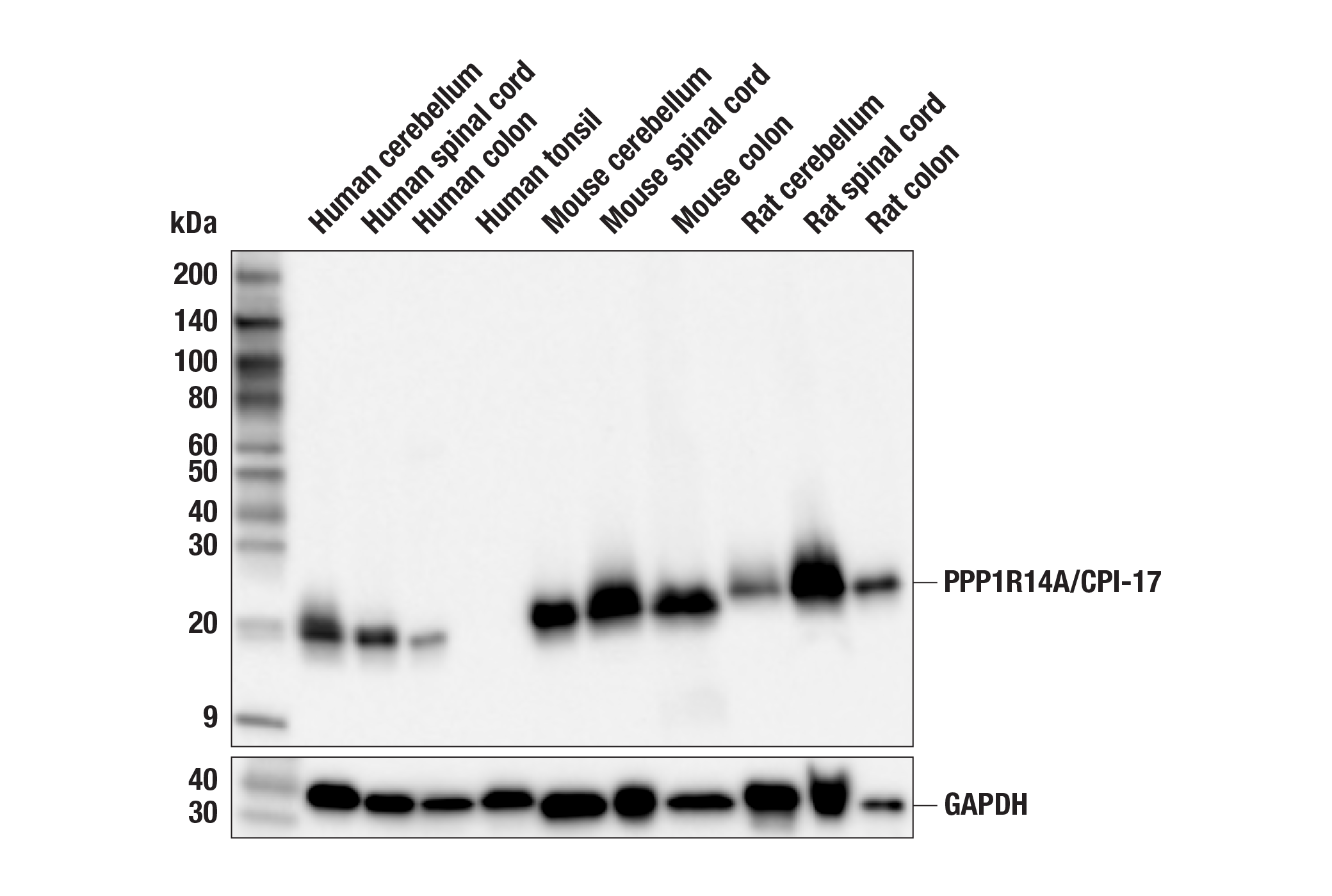 17 kDa PKC-potentiated inhibitory protein of PP1; 17-KDa protein; 17-kDa PKC-potentiated inhibitory protein of PP1; 17-KDa protein; CPI-17; CPI17; PKC-potentiated inhibitory protein of PP1; PP14A; PPP1INL; PPP1R14A; Protein kinase C-potentiated inhibitor protein of 17 kDa; protein phosphatase 1 regulatory inhibitor subunit 14A; Protein phosphatase 1 regulatory subunit 14A; protein phosphatase 1, regulatory (inhibitor) subunit 14A