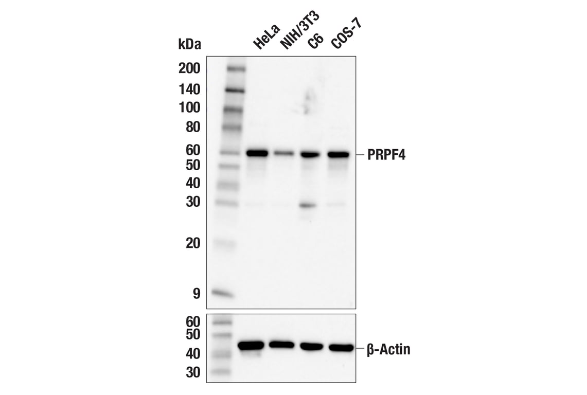 PRPF4 (F9Z1U) Rabbit Monoclonal Antibody recognizes endogenous levels of total PRPF4 protein.