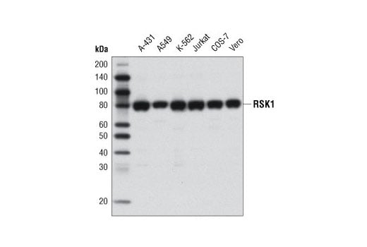 RSK1 (D6D5) Rabbit Monoclonal Antibody recognizes endogenous levels of total RSK1 protein. This antibody does not cross-react with other RSK isoforms.