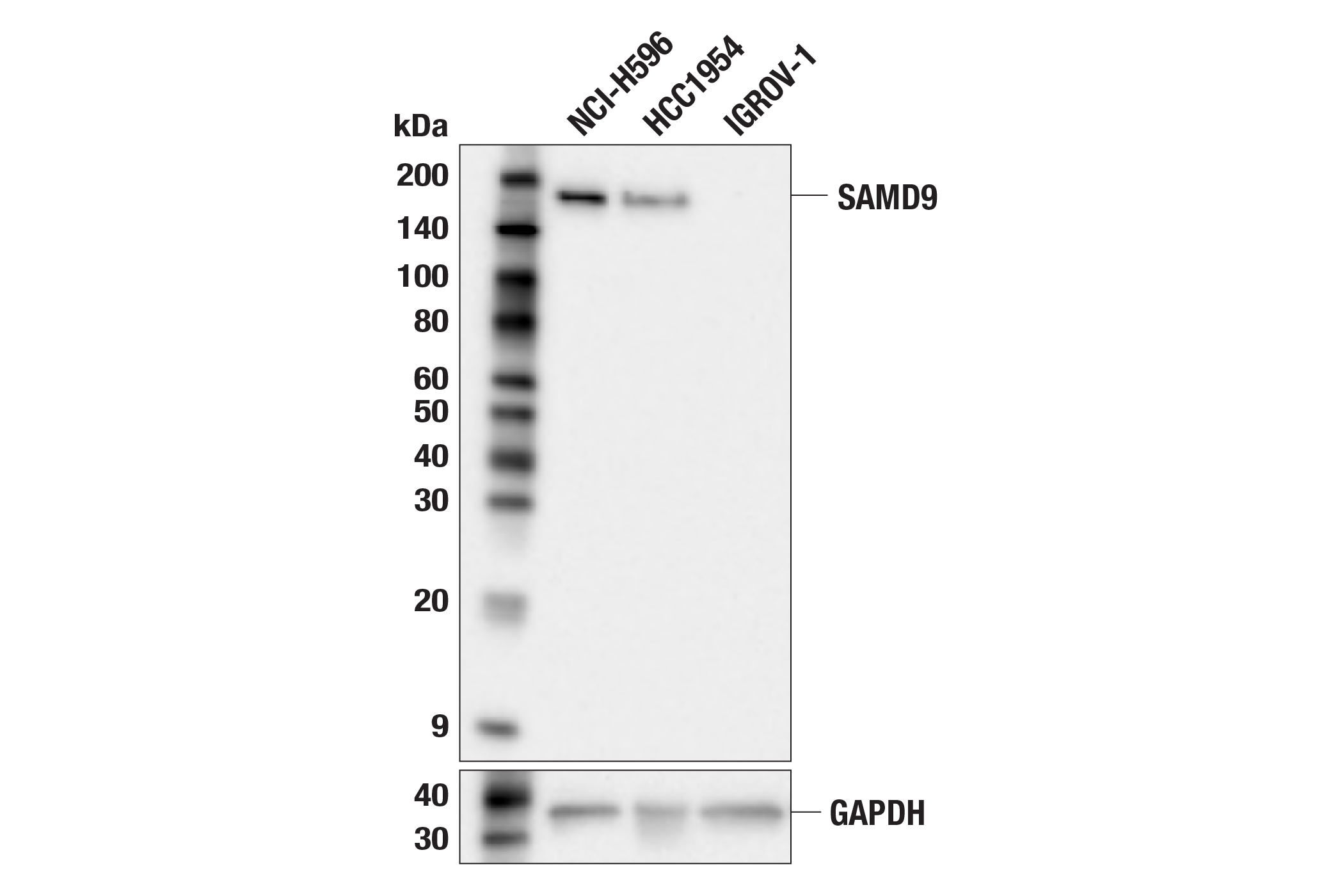 SAMD9 (F9J1K) Rabbit Monoclonal Antibody recognizes endogenous levels of total SAMD9 protein.