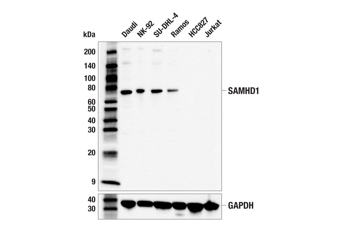 SAMHD1 (E8V1G) Rabbit Monoclonal Antibody recognizes endogenous levels of total SAMHD1 protein.