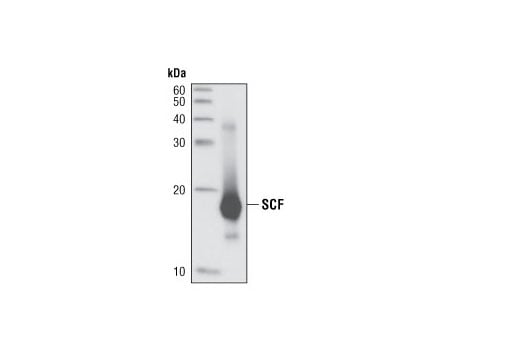 SCF (C19H6) Rabbit Monoclonal Antibody detects endogenous levels of SCF by immunohistochemical staining and by flow cytometry. Western blotting detects recombinant SCF.