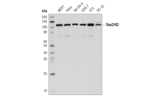 Sec24D (D9M7L) Rabbit Monoclonal Antibody recognizes endogenous levels of total Sec24D protein.