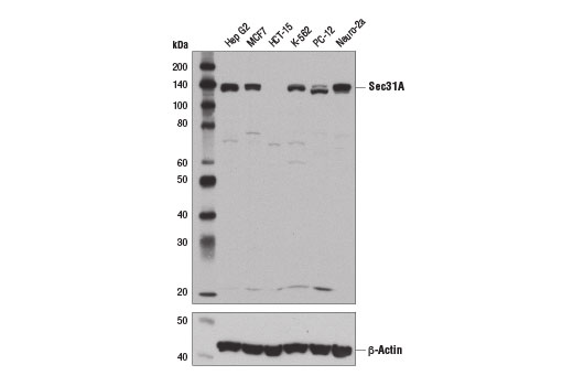 Sec31A (E1J5M) Rabbit Monoclonal Antibody recognizes endogenous levels of total Sec31A protein.