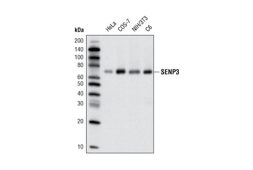 SENP3 (D20A10) Rabbit Monoclonal Antibody detects endogeneous levels of total SENP3 protein.