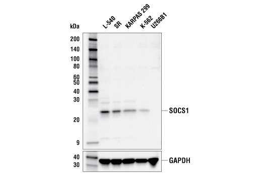 SOCS1 (E3Q4M) Rabbit Monoclonal Antibody recognizes endogenous levels of total SOCS1 protein.