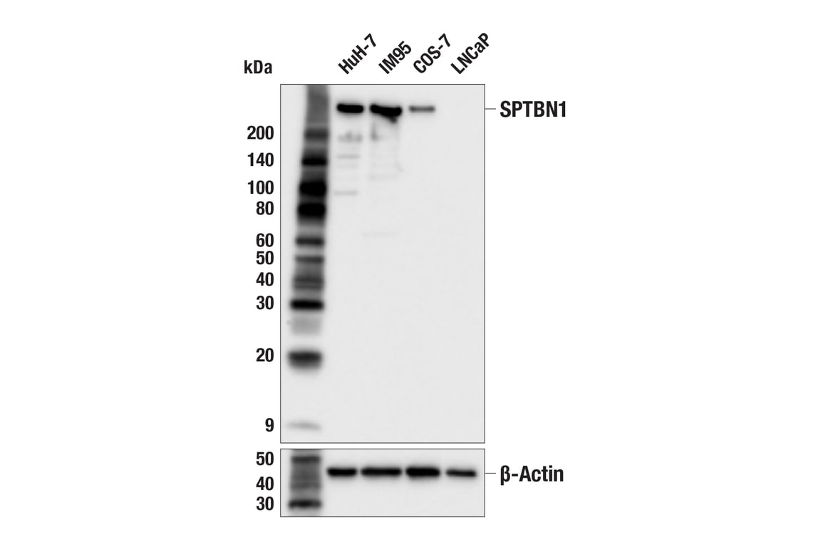 SPTBN1 is involved in cell growth and development (particularly in brain) via the TGF-β/Smad signaling pathway (3,4). SPTBN1 knockout mice show defects in cortical organization, developmental delay, and behavioral deficiencies (3), and variants in human SPTBN1 have been strongly implicated in intellectual disabilities and autism (4). Aberrant expression of SPTBN1 in various cell and tissue types has been shown in cancer development and progression, particularly ovarian, breast, and liver cancers (5-8). SPTBN1 plays an anticancer role in many tumor types. It assists in chemotherapeutic resistance and decreases the migration ability of tumor cells (5,6), highlighting its role in metastatic tumor progression and its potential as a pharmaceutical target (7-9). Recent work has shown that SPTBN1 is important for controlling CAR-T cell migration targeting tumors (10).