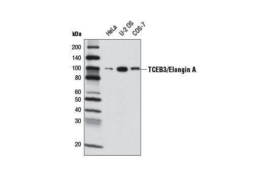 EloA; ELOA1; Elongin 110 kDa subunit; elongin A; Elongin-A; FLJ38760; FLJ42849; RNA polymerase II transcription factor SIII subunit A1; SIII; SIII p110; TCEB3; TCEB3A; transcription elongation factor B (SIII), polypeptide 3 (110kDa, elongin A); transcription elongation factor B alpha subunit; Transcription elongation factor B polypeptide 3; transcription elongation factor B subunit 3