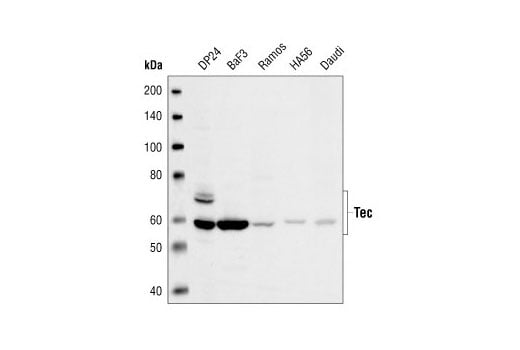 Tec Antibody detects endogenous levels of Tec protein. This antibody does not cross-react with Etk, Itk or Btk.
