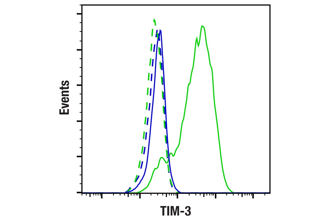 T cell Ig- and mucin-domain-containing molecules (TIMs) are a family of transmembrane proteins expressed by various immune cells. TIM-3 is an inhibitory molecule that is induced following T cell activation (1-3 ). TIM-3 is expressed by exhausted T cells in the settings of chronic infection and cancer (4,5), and tumor-infiltrating T cells that coexpress PD-1 and TIM-3 exhibit the most severe exhausted phenotype (5). Tumor-infiltrating dendritic cells (DCs) also express TIM-3. TIM-3 expression on DCs was found to suppress innate immunity by reducing the immunogenicity of nucleic acids released by dying tumor cells (6). Research studies show that heterodimerization of TIM-3 with CEACAM-1 is critical for the inhibitory function of TIM-3, and co-blockade of TIM-3 and CEACAM-1 enhanced anti-tumor responses in a mouse model of colorectal cancer (7). In addition, blockade of TIM-3 in mouse models of autoimmunity enhanced the severity of disease (1). Finally, binding of Galectin-9 to TIM-3 expressed by Th1 cells induces T cell death (8).