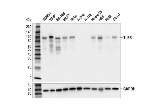 TLE3 (E4F3Y) Rabbit Monoclonal Antibody recognizes endogenous levels of total TLE3 protein.