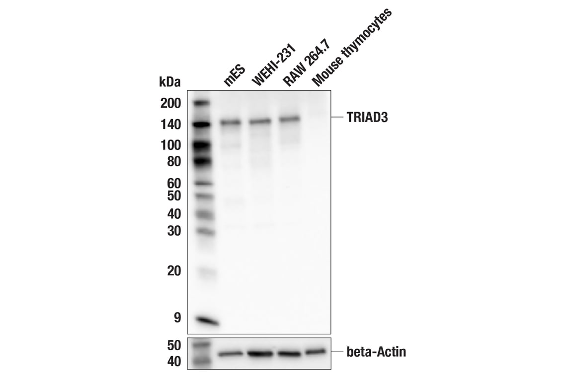 As a ubiquitin-protein ligase, TRIAD3 promotes ubiquitination and proteolytic degradation of these TLRs, acting as a negative regulator of their signaling activation (1-4). In addition, TRIAD3 interacts and promotes downregulation of two TIR domain-containing adapter molecules, TIR domain-containing adapter-inducing IFN-β (TRIF) and TRIF-related TIR domain-containing adapter protein (TIRAP) (4). Moreover, TRIAD3 has been shown to act as a negative regulator of TNF-α signaling by interacting with RIP1, effectively impeding RIP1-mediated NF-κB activation (5).